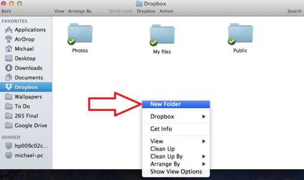 1) presionado control y haga clic dentro de la carpeta de Dropbox y seleccione "nueva carpeta".