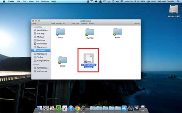 Nota: Si desea enviar el archivo a una carpeta específica dentro de su carpeta de Dropbox, simplemente arrastre y suelte el archivo dentro de la carpeta específica.