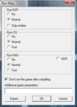 Si lo desea, también puede poner cualquier otra cosa que desee en el mapa. Si listo, tu ahora listo para compilar y luego jugar su nuevo mapa. Ir a archivo, ejecutar el mapa. Debe saltar una ventana. El cuadro siguiente muestra la configuración que uso mucho. Les sugiero, pero no tienes que. Cuando su listo, haga clic en Aceptar. Se abrirá una ventana nueva y empezará a compilar tu mapa.