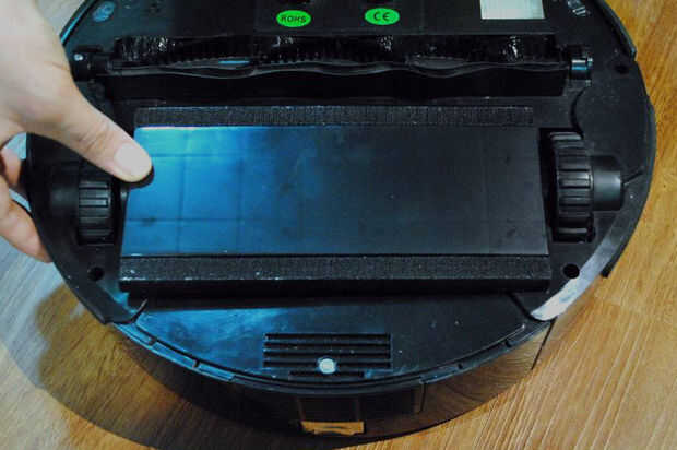 Presione el soporte de fregona suavemente en medio de las ruedas. Oirá un clic cuando las lengüetas laterales de la cerradura a Bob.