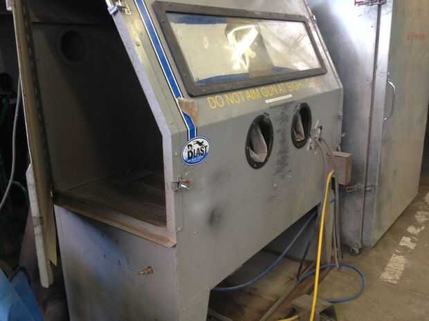 El arenador de la arena (también conocido como media blaster abrasivo chorro o gabinete) funciona disparando un chorro de alta presión de material abrasivo en la pieza de trabajo para desgastar el material de la superficie. Se puede utilizar a la tira de pintura en la preparación de la capa del polvo, o para grabar vidrio. Este Instrucatable lo guiará como configuración, uso y limpieza después de usar el arenador de la arena en el lugar de TechShop San Francisco. La parte que voy demostrando con es una horquilla de bicicleta que fue pintado de color rojo que lo quiero pintar de un color diferente.