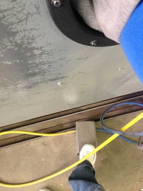 Para iniciar el chorro de arena, pise el pedal de pie debajo de la máquina y apunte con la pistola de chorro de arena en la pieza de trabajo. Sostuvo el arma cerca de 2 a 4 pulgadas lejos de la horquilla de la bicicleta y me movido lentamente hacia adelante y hacia atrás sobre un área pequeña hasta que la pintura llegó lejos. Fue bastante fácil y toda la pieza tomó unos 10 minutos. Dependiendo de lo que usted se chorreo de arena, podría tomar mucho más tiempo.