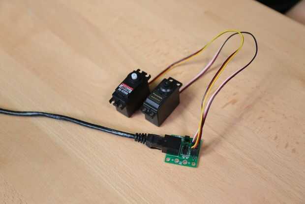 Servos pueden conectar directamente a la Junta a través de los pines al puerto de CAT6. Estas clavijas llevan la etiqueta de ' señal, '+' para positivo y '-' para negativo. Esta conexión funciona con casi cualquier marca de servo tiene el conector universal de estilo o tiene la ficha al borde para mayor claridad de la orientación de la clavija.
