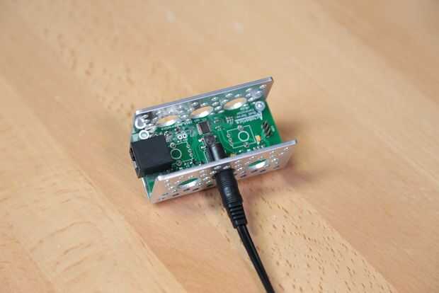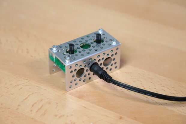 Los potenciómetros se alinearán convenientemente con los agujeros de 1/2" en el canal por lo que pueden pegarlas por los orificios de canal si lo desea. Con una altura correcta hasta la toma de corriente será accesible/usable (. 375" separadores utilizado en la imagen para la alineación apropiada).