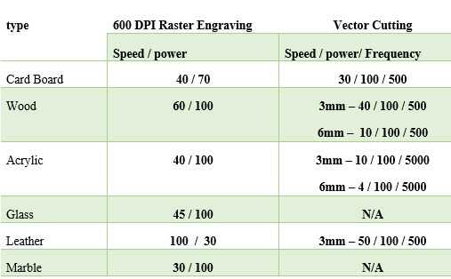 Adjunto con este paso una tabla con todos los ajustes necesario para tipos más comunes de los materiales que utilizamos.