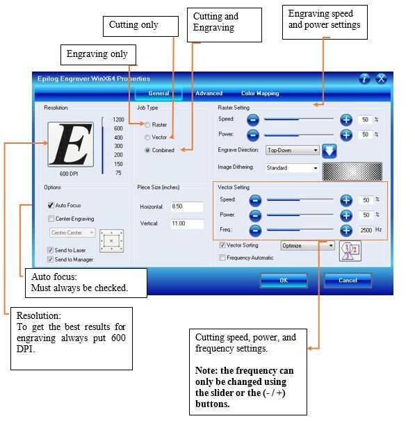 Paso 4: Usando el panel de propiedades de grabador de Epilog