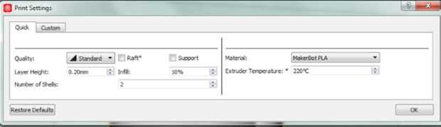 Paso 5: Makerbot escritorio, configuraciones de impresión