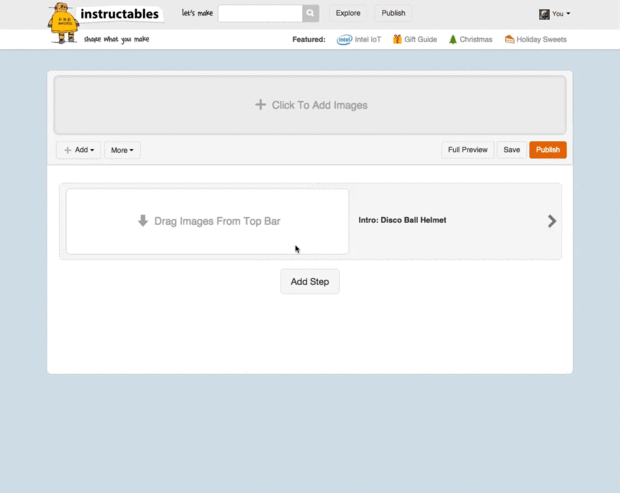Esta es la pantalla por defecto para la creación de su Instructable. Explicar cómo se hace el proyecto mediante texto, imágenes, videos y archivos. Utilice tantos pasos como explicar el proyecto claramente. Un paso Instructables están bien también, especialmente para recetas y otros proyectos sencillos.