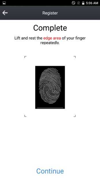 Una vez que el escaneo se realiza y se ha recogido toda la información sobre el dedo, pulse continuar.