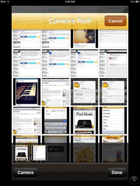 Esto cargará tu álbum de fotos (la aplicación "fotos", o al menos una notificación diciendo que instructables le da acceso a su cámara de rollo) si usted recibe esa notificación, pulse OK Ahora pulsa las imágenes que desea usar (véase imagen 1). Cuando termines, pulsa "Done". ¿Ahora viene la diversión parte, cuando quiere agregar una foto a un paso? Yah, arrastra la foto hacia el lugar donde dice "soltar imágenes aquí". Cool ¿verdad?