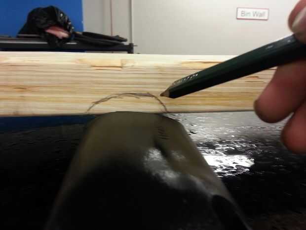 Poner la madera en el estante y el esquema que deben ser sus muescas para caber comodamente y trábela en su lugar.
