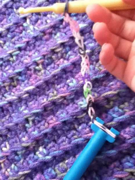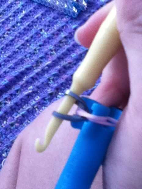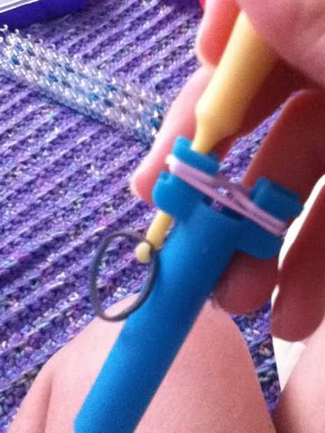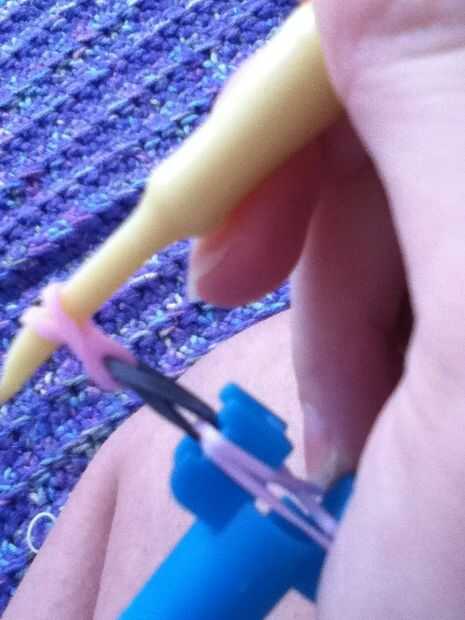 Poner el ganchillo a través de poner una banda en el gancho y subir y agarrar a del otro lado de la banda luego seguir imprimiendo las bandas hasta la longitud deseada