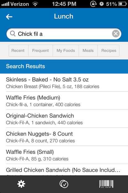Resultados de la búsqueda aparecerán y contendrán el título de los alimentos y una pequeña descripción debajo de él así como la porción tamaño y calorías cuenta. Usted tendrá que desplazarse por las opciones hasta llegar a un alimento que más se parece a lo que usted comió. Para seleccionar un alimento, se debe simplemente golpéelo.