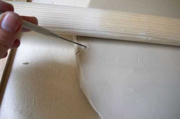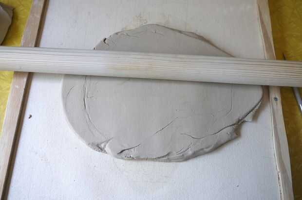 Cuando parcialmente se rueda hacia fuera, usted probablemente notará algunas burbujas en la arcilla. Hágale un agujero pequeño en cada uno con su herramienta. También tienes que mantener los bancos y girar la losa ya que rollo. Esto ayudará a impedir que querer acurrucarse mientras se seca.