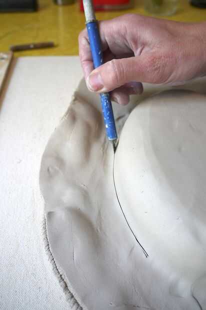 Cómo utilizar el rodillo de losa y bajar moldes para hacer un tazón de fuente (7 / 8 paso)