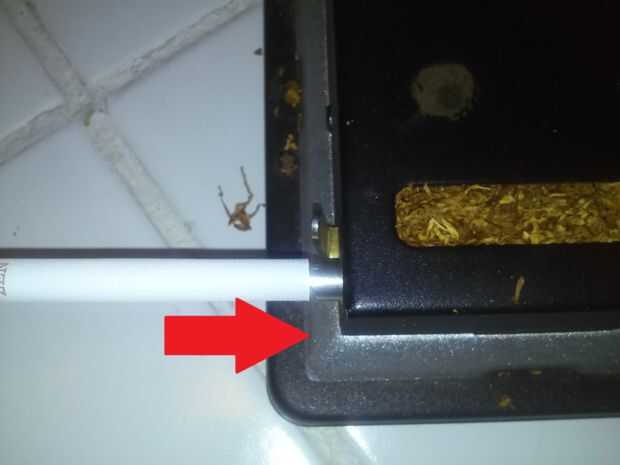 Tomar un tubo de filtro de cigarrillo y alinee el extremo abierto con la boquilla del tubo. Coloque con cuidado el tubo en la boquilla.