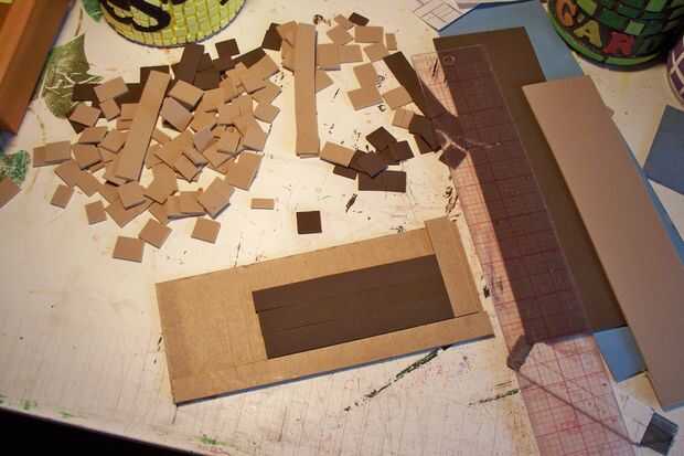 Se muestra es un simple "jig" que hice para colocar un pequeño pedazo de espuma en y ser capaz de reproducir el mismo tamaño del azulejo. Imágenes de clip art, copiar su fuente, entonces ya sea sostener muy firmemente como cortar con tijeras o pegamento la imagen sobre la espuma. He utilizado adhesivo en aerosol para hacer eso, y el papel se retira fácilmente cuando termine.