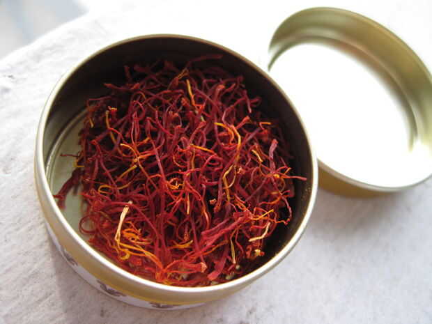 Azafrán debe ser rojo/naranja oscuro en color, y cuando se añade a la cocción líquido empezará a girar el plato de un color amarillo hermoso. Se utiliza sobre todo con pescado y arroz y es un ingrediente clave en la paella. También me gusta con garbanzos y pollo.