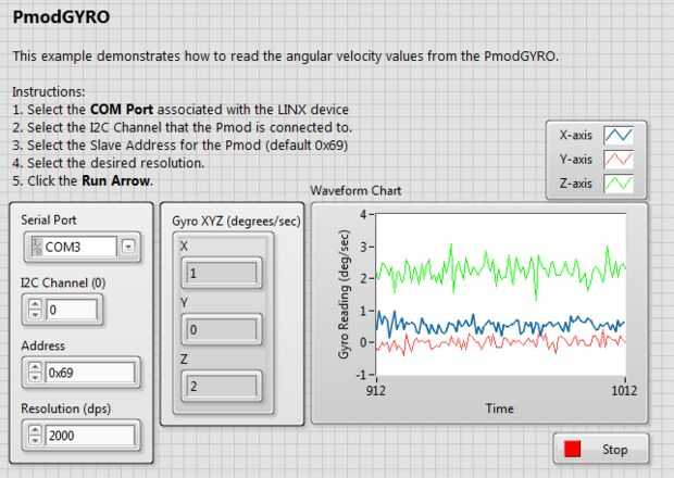 A continuación, tenemos que ver la hoja de datos para el sensor giroscópico. Esto nos dará información acerca de cómo los trabajos de sensor y lo registra necesitamos lectura y escritura. El sensor que utiliza el PmodGYRO es el L3G4200D y aquí está la hoja de datos para él. En la página 10 se dispone de información sobre las distintas resoluciones para cada una de las gamas. Estos serán importantes para convertir el valor entero con signo en un valor significativo en grados por segundo.