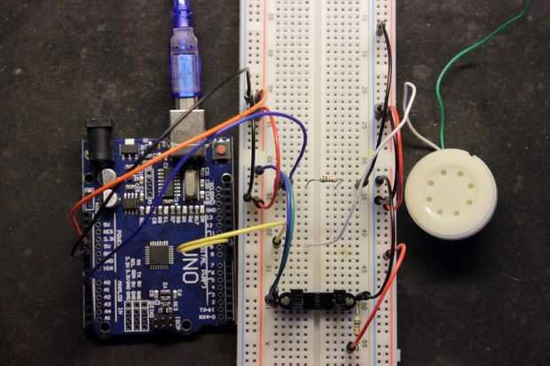 Ahora que tienes el código subido y funcionando abren su serie controlar (para vigilar la entrada analógica para afinar el programa) y encontrar algo para poner en el hueco de foto interruptores para activar la alarma. Si usted está usando un interruptor foto diferentes puede que necesite modificar el código de trabajo óptimo para usted, pero si su uso de la misma materia como me acaba de poner un trozo de papel entre la brecha y la alarma debe apagarse...