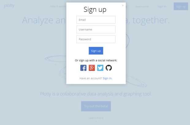 Primero vamos a crear una cuenta plotly, es fácil, es rápido y lo mejor de todo, es gratis! Suben a su sitio web y una cuenta.
