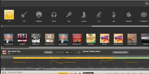 Elegir la música de fondo para tu canción entre un numeroso cantidad de canciones.