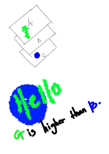 También, si usted algo en la capa c color, usted puede sobre-dibujarlo en capa a o b, porque se encuentra más alto y c de la capa.
