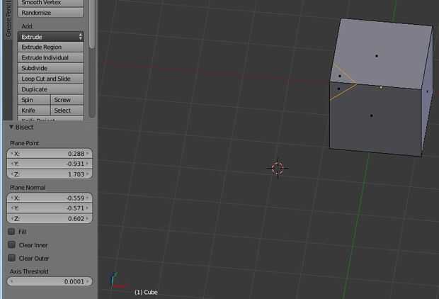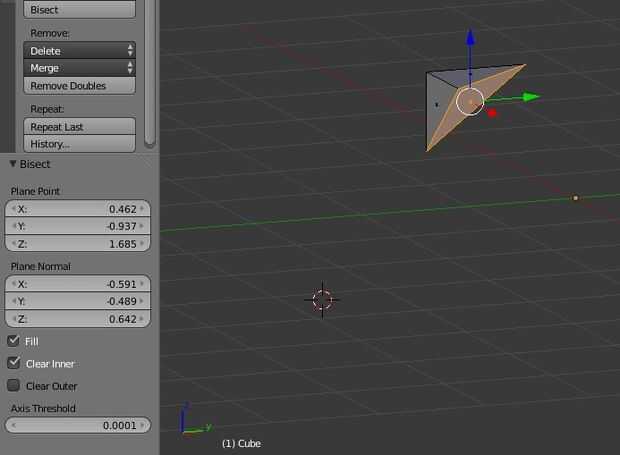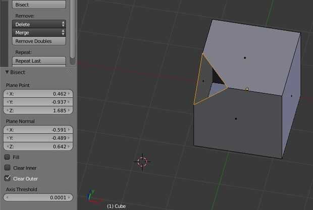 Una vez que inicialmente hemos atravesada nuestro objeto, hay algunas cosas que serán brevemente disponibles para nosotros, al igual que el número de timbres disponibles para un ámbito recién creado. En el lado izquierdo de la pantalla debajo de la barra de herramientas habrá un menú de ranura. Aquí, usted puede ajustar donde se encuentra su línea bisecado así como algunas otras características. Las opciones "Claro externo" y "Claro interior" son capaces de eliminar a un lado o el otro borde bisecado y la opción de "Rellenar" pondrá una cara conectando los bordes bisecados.