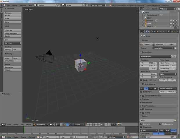A continuación el Outliner es el Editor de propiedades donde puede decidir qué unidades están trabajando, cambiar la orientación a objetos, la textura de los objetos, agregue modificadores a los objetos, junto con una variedad de otras características.