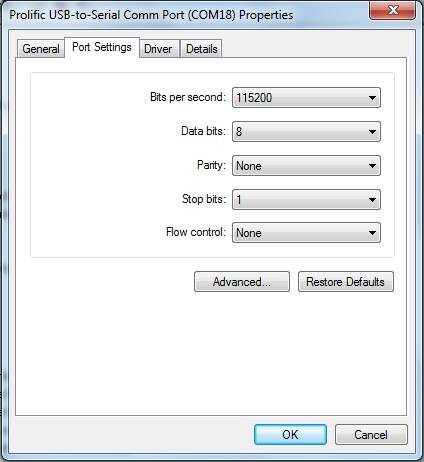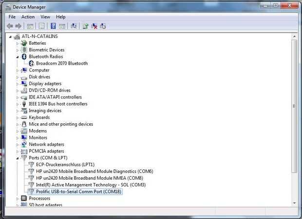 El cable es un USB clásico al uso de serial PL2303 chipset de prolífico (nombre molesto - he perdido tiempo, no fue prolífico en todos). Después de encontrar el drivers correctos para el cable, el cable era un puerto serie.