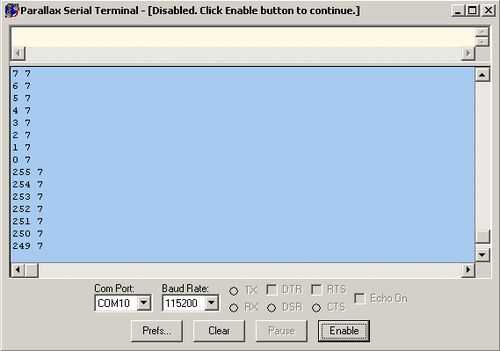 Cuando se ejecuta el código, el terminal serie muestra información como el cuadro al girar la perilla izquierda o derecha!