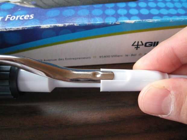 Poner cuidadosamente la ranura deseada en la varilla metálica para que la varilla se desliza en la ranura.