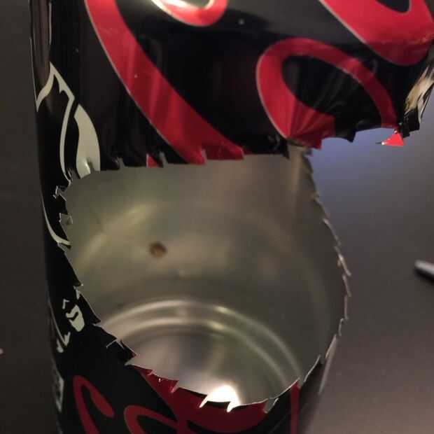 ◦ Dibujar un pequeño círculo sobre el papel (no más grande que el lado de la lata), corte a tijera de uso