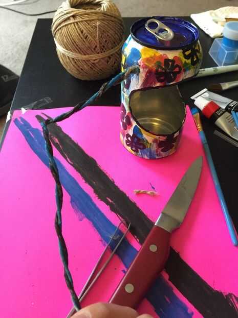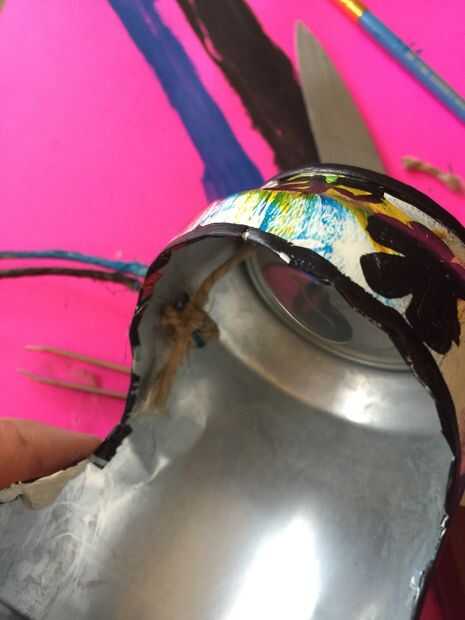 ◦ Utilizar dos hilos de yute trenzado enhebrado a través de un agujero que hicimos en el paso 2.