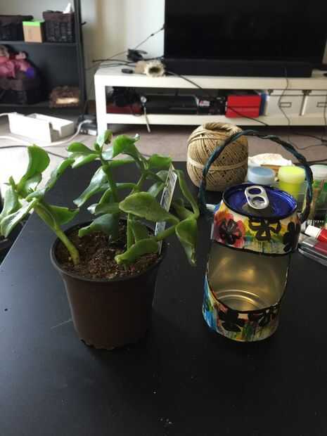 (Consejos: no utilice plantas demasiado grandes, las latas son demasiado pequeñas para contenerla.)