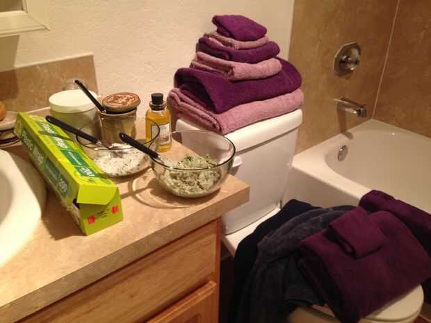 Configurar los productos en el mostrador del cuarto de baño y mantenga las toallas y la sudadera de fácil acceso.