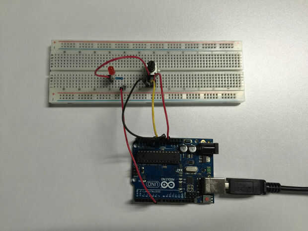 Después de terminar de construir el circuito, conectar la placa de Arduino UNO y computadora vía cable USB, seleccione el puerto serie excepto COM1, luego instalar el firmware para que la junta puede identificar las instrucciones mBlock. Por último, se puede girar el potenciómetro para modificar la luminancia de la luz.