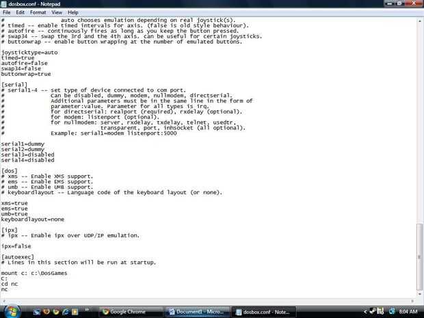En la nueva versión de DosBox, 0,74 debe navegar a la carpeta de DOSBox 0.74 y abra el archivo DOSBox 0.74 Options.bat para acceder al archivo de conf. Alternativamente, puede navegar a la carpeta de DOSBox 0.74 en el menú Inicio y seleccionar la carpeta de opciones, seguido por las opciones de DOSBox 0.74 para acceder al archivo de conf. Continuar el montaje mismo de la entrada como sigue.