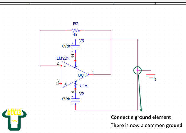 Configuración de un terreno común para las dos fuentes VDC que solo conectado el Op-Amp. Siga los pasos de las imágenes.