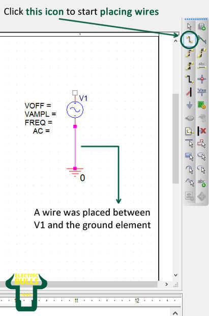 Este paso utiliza la herramienta Cable de lugar . Se trata de la herramienta ir a conectar los componentes. Haga clic en el icono de las imágenes y haga clic en el lugar de trabajo para empezar a colocar un alambre.