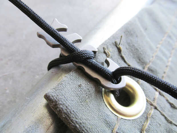 si vale la pena que merece la pena atar con paracord. Lo único es, vinculación nudos en paracord pueden tomar fuerza de superhéroe. Mi aporte es este pequeño individuo, "Espina de pescado". No es un tensor de cuerda de nudos sin bordes dentados.