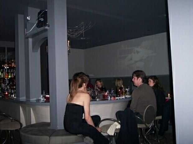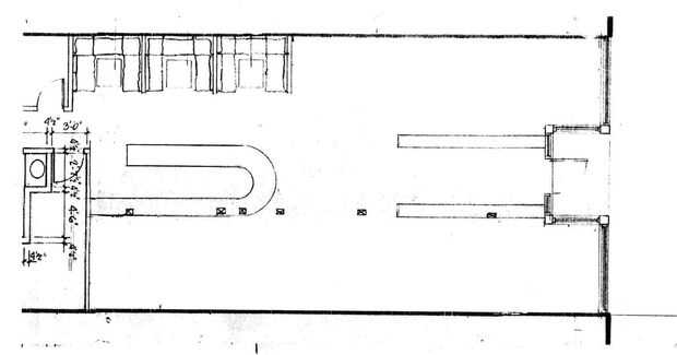 El salón fue pintado negro sobre todo en los dos últimos años de su existencia como puede ver en las fotos de la demolición en el siguiente paso (las fotos por encima aquí fueron tomadas hace varios años cuando fue pintado azul / gris).