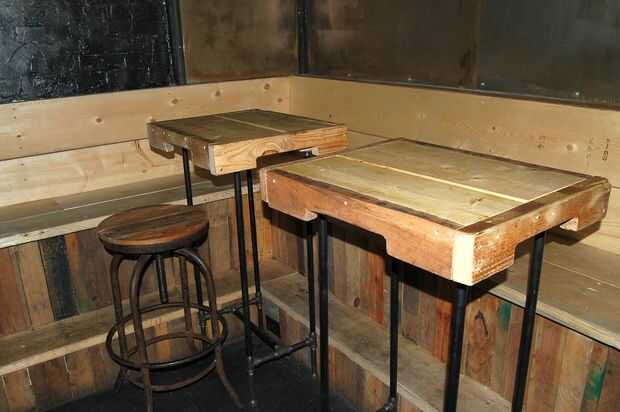 Hemos sido capaces de encontrar que algunos utilizan bases para las mesas bajas, pero no lo suficiente para todas las tablas de "altas" y el contador de la ventana. En consonancia con el tema rústico que queríamos algo industriales. En el frente del restaurante había una tubería de gas corriendo la pared que nos dio una idea: uso de rosca tubo de gas para las bases adicionales, es fácilmente disponible en muchos tamaños estándar y tiene accesorios y bridas que nos permitirá crear una base sin conseguir trabajo metal personalizado.