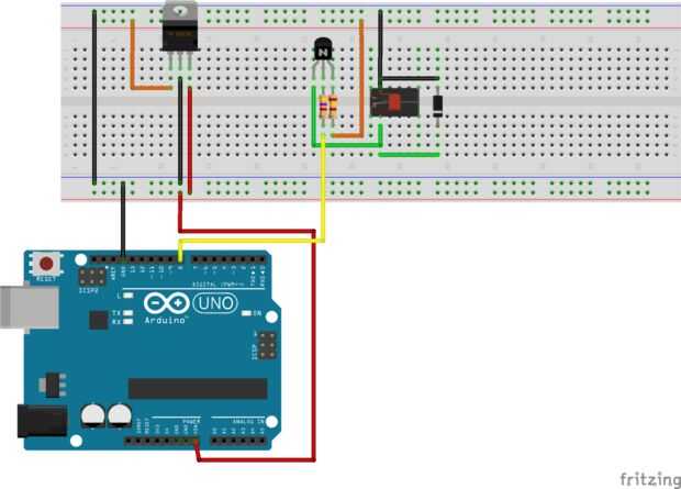 Sólo algunos componentes extras: 3 regulador de voltaje patas como un 7805, un transistor (NPN), un diodo (como un 1N4001) y dos resistencias. Y por supuesto el relé.