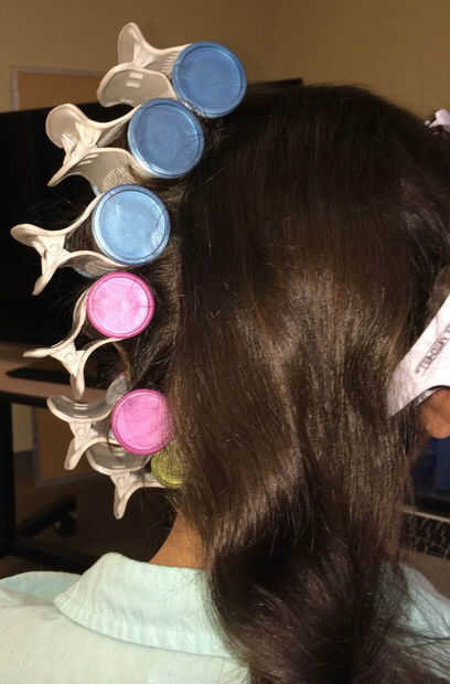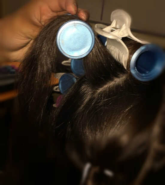 Me gusta usar rodillos más grandes hasta la parte superior para darle más volumen y cuerpo, luego medio y pequeño tamaño rodillos medida hacia abajo.