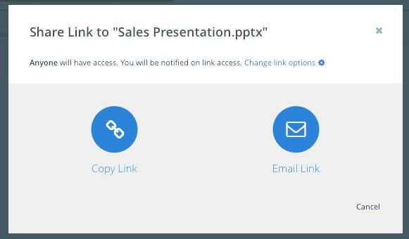 Una vez en la carpeta, puede compartir los archivos con otros miembros del equipo o los clientes ellos mismos. Usted puede enviar el enlace dentro de la aplicación, o puede copiar el enlace y enviar usando su método preferido.