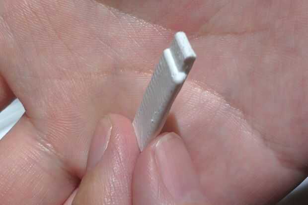 después de que un contratista barnizadas nuestra cubierta salieron un buen número de esquinas agudas de ásperos en el parpadeo.  Traté de silicona pero no era lo suficientemente fuerte y mantiene caída.Agregar un pedazo de Sugru en cada esquina (desp