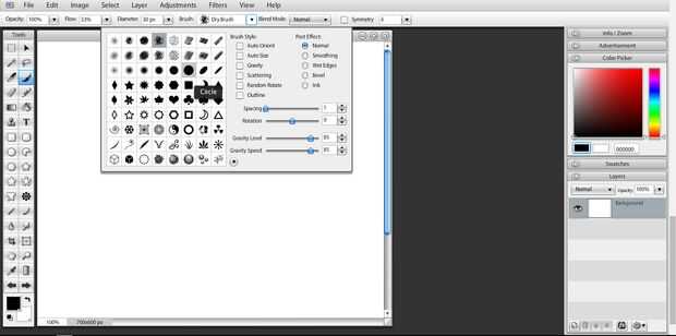 Para cambiar del pincel sí mismo haga clic en el botón etiquetado como "pincel". Luego se le mostrará varias opciones de textura fresca.