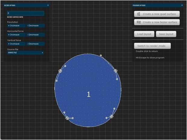 - Si no hay ningunas superficies de bezier en la pantalla, agregue uno usando el botón de crear nueva superficie de Bézier .