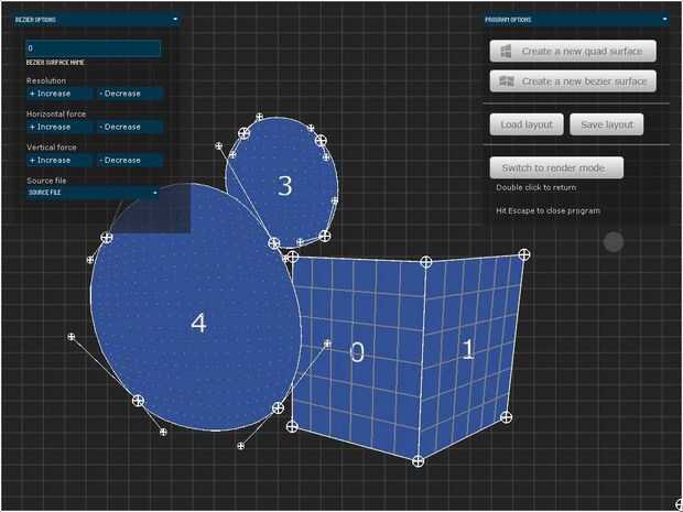 - Agregue quads y beziers usando los botones en el menú de opciones del programa.
